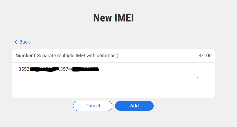 נזין את ה-IMEI שלנו (את שני המספרים, כי המכשירים הם Dual SIM).