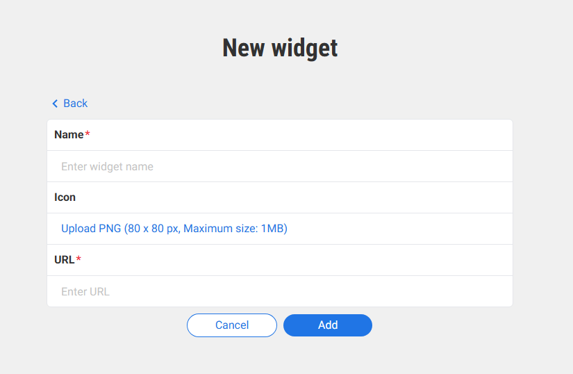 ב-Icon נבחר להעלות תמונה בפורמט PNG בגודל 80x80 פיקסלים (עד 1MB).