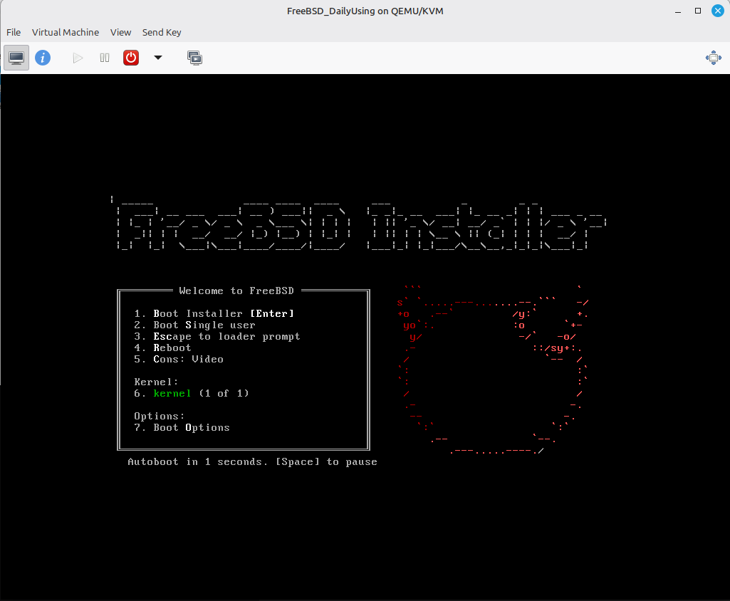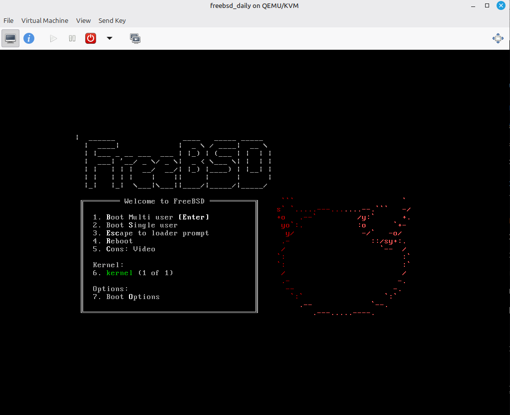 נחכה שהמכונה תופעל מחדש, ואיזו התרגשות - נקבל את מסך הפתיחה של FreeBSD.