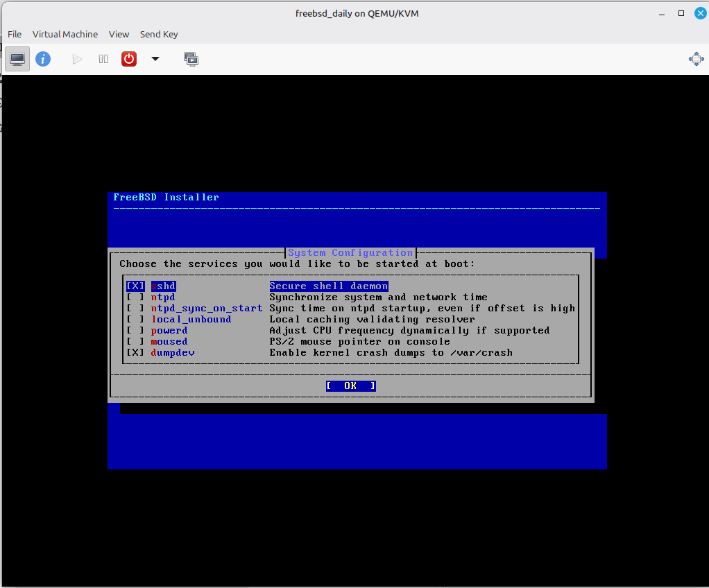 הוספתי את ntpd - בקשר לרשת, ואת moused - לטובת העכבר. בכל מקרה המטרה שלנו היא מערכת גרפית :)