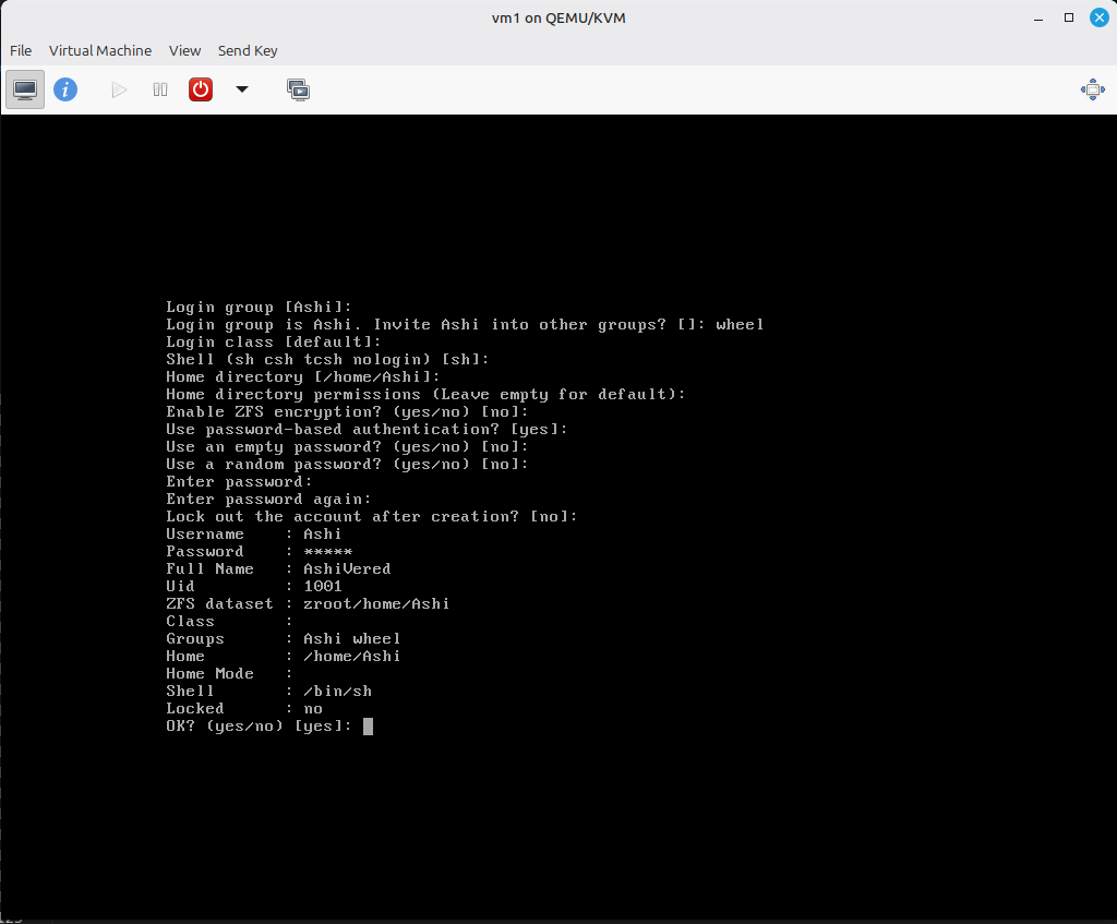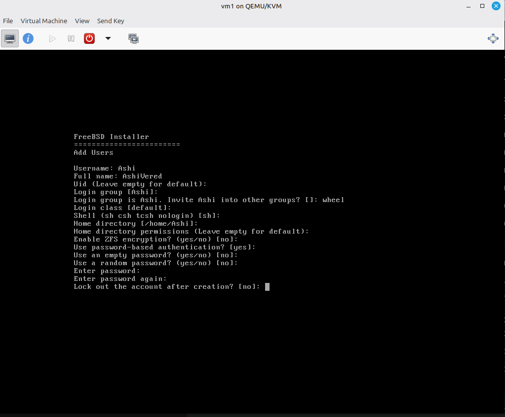 20) כעת נתבקש ליצור את המשתמש שלנו. בשם המשתמש ובשם המלא נשים מה שנרצה. איפה שיש שורות ריקות זה כי השארתי את ברירת המחדל (אנטר). בהזמנה לקבוצות בחרתי wheel כדי שאוכל בהמשך להשתמש בsudo וכדומה.