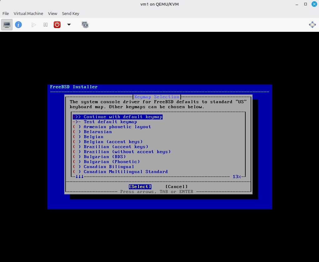 הידד! קיבלתי את מסך ההתקנה של FreeBSD. וזה בערך החלק הכי גרפי שאני אראה לאורך כל ההתקנה - שלא נדבר על אחר כך… המערכת מגיעה ללא שום GUI.