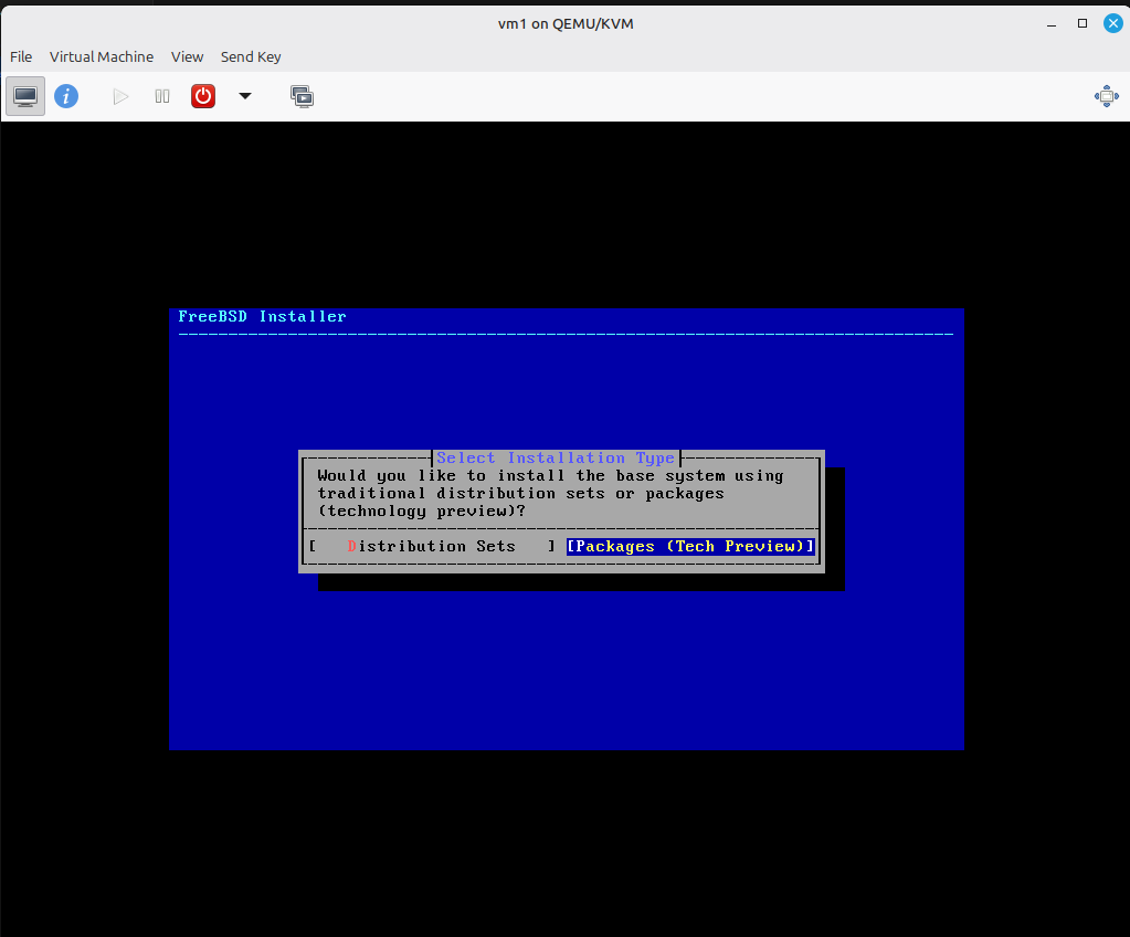 5) במסך הבא, אנחנו צריכים לבחור בין 2 שיטות התקנה. האחת, הקלאסית, Distribution Sets וPackages. ההבדל הוא שבשיטה השניה כל המערכת בעצם מותקנת כחבילות נפרדות הניתנות בהמשך לעדכון כל אחת בנפרד וכדומה. הרציונאל והיתרון ברורים, אך מכיוון שזה כרגע עדיין מוצע כPreview, בחרתי בשיטה הישנה.