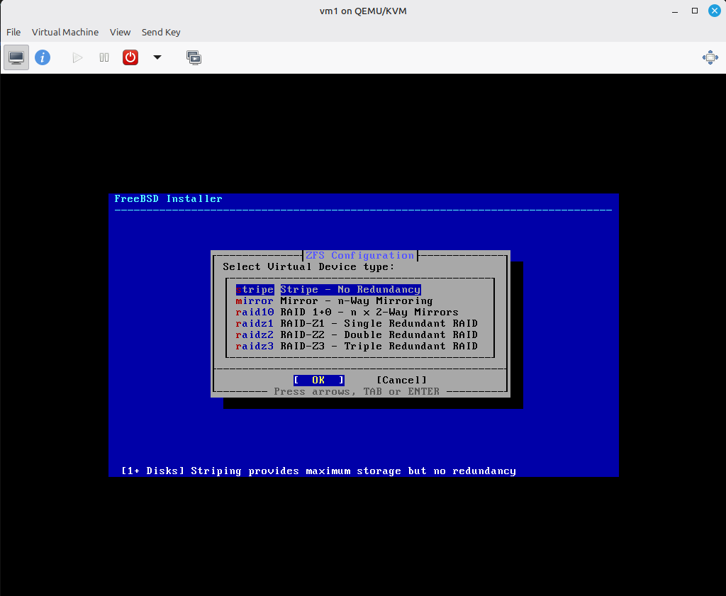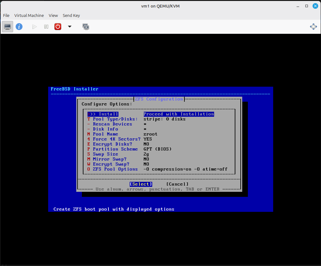 8) נשארתי בZFS, הדיפולטיבית.