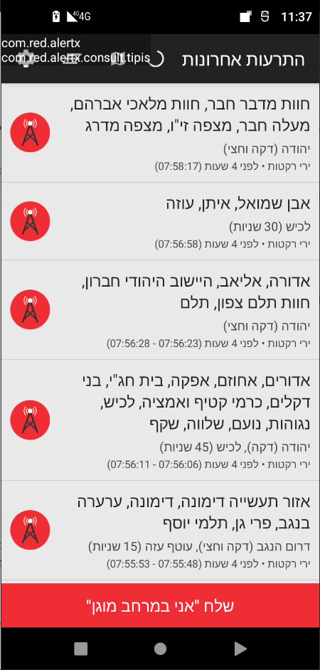 ירוט טיל איראני במבצע “עם כלביא” על רקע הזריחה בדיקה ראשונית שלו תראה ששם החבילה הוא com.red.alertx ולא com.red.alert - שם החבילה של האפליקציה האמיתית.