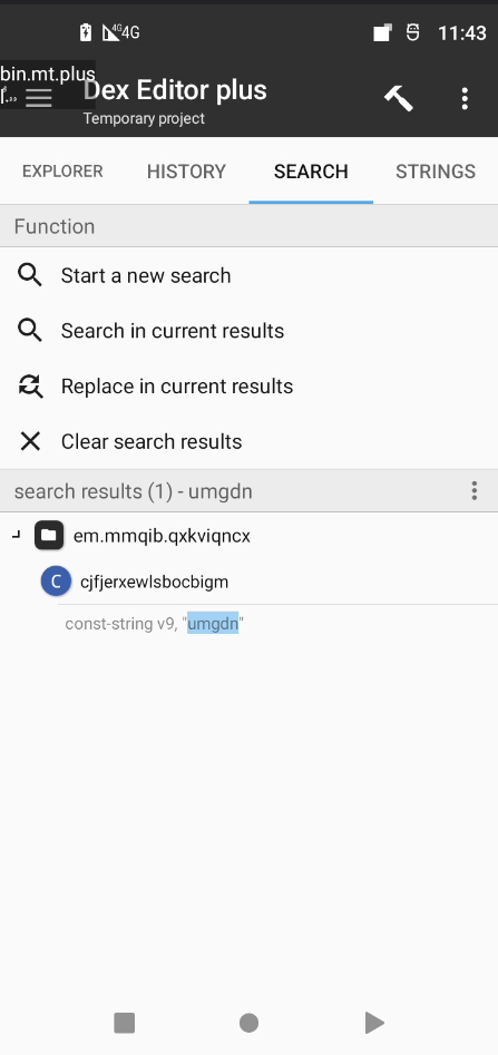 אז חיפשתי בSMALI את המילה umgdn - ומצאתי אותה במקום אחד, עם שם מוזר - בהחלט מריח כמו קוד שעבר אובספיקציה.