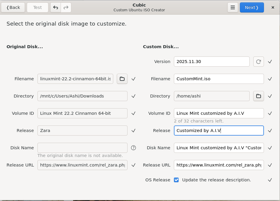 .בשלב הבא, נבחר את קובץ הiso ונבחר איך לקרוא ל”הפצה” החדשה שלנו, איזה מספר גרסא היא, וכדומה.